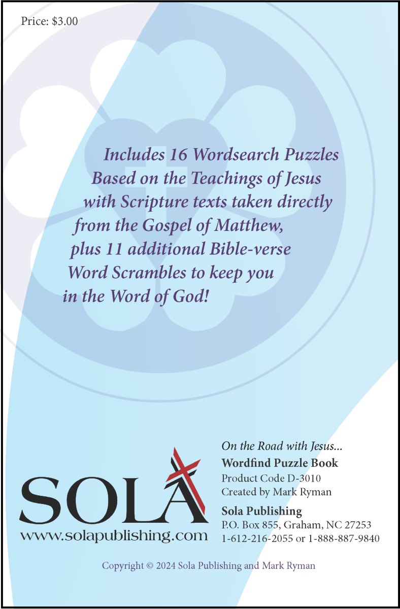 This little booklet is a collection of puzzles based on the Teachings of Jesus. It includes 16 Wordsearch Puzzles with Scripture texts taken directly from the Gospel of Matthew, plus 11 additional Bible-verse Word Scrambles to keep you in the Word of God!
