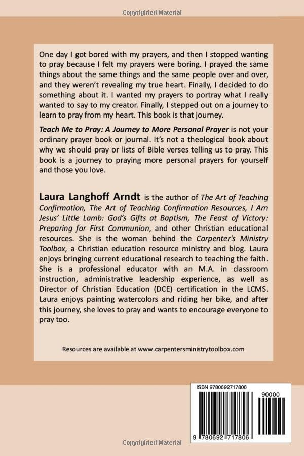 This is not your ordinary prayer journal. It's a prayer journey and a journal that can be used as the reader goes through the journey to intentionally praying more personal prayers. When I started feeling that my prayers were not asking or saying to God what I wanted them to, I started on a journey that lead me to more satisfying personal prayer. This book steps the reader through the same journey, so that they can pray more intentionally about their own issues, those surrounding family and friends, as well as their community. This book provides a plan for the reader to think about and write down their prayers so that they don't have to constantly reinvent their prayer wheel. Opening this journal each time you speak to the Lord will help you focus your prayers and say what is truly in your heart and mind.